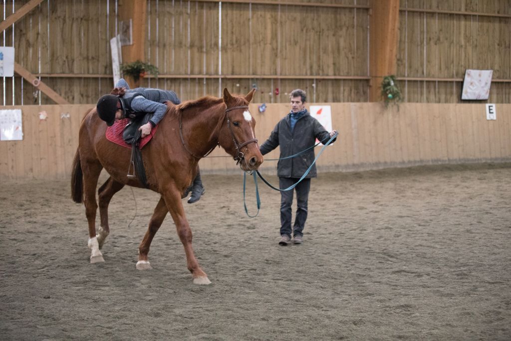Réponse: débourrer un jeune cheval.