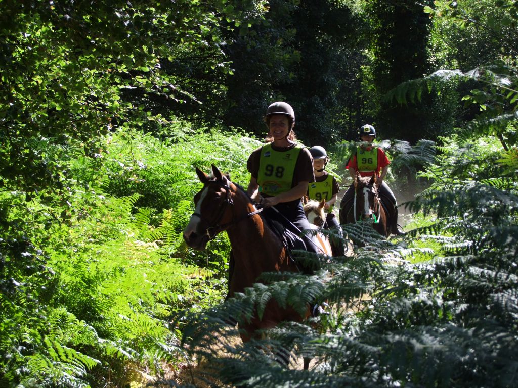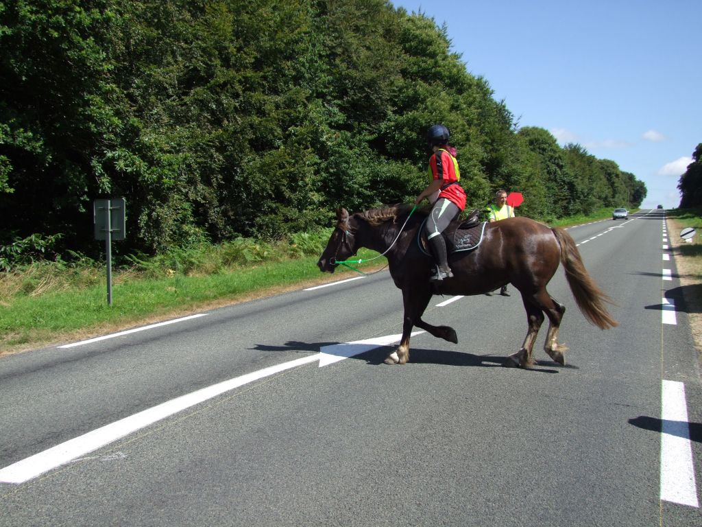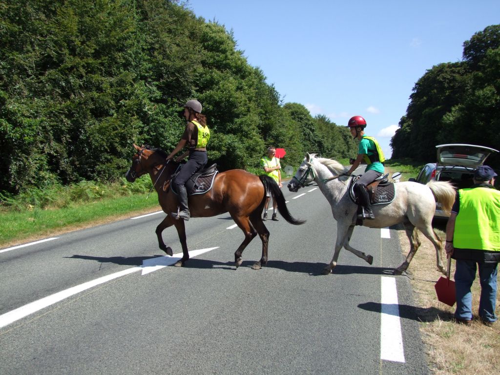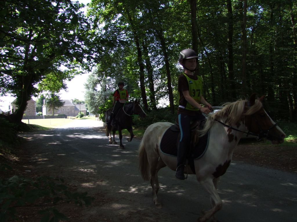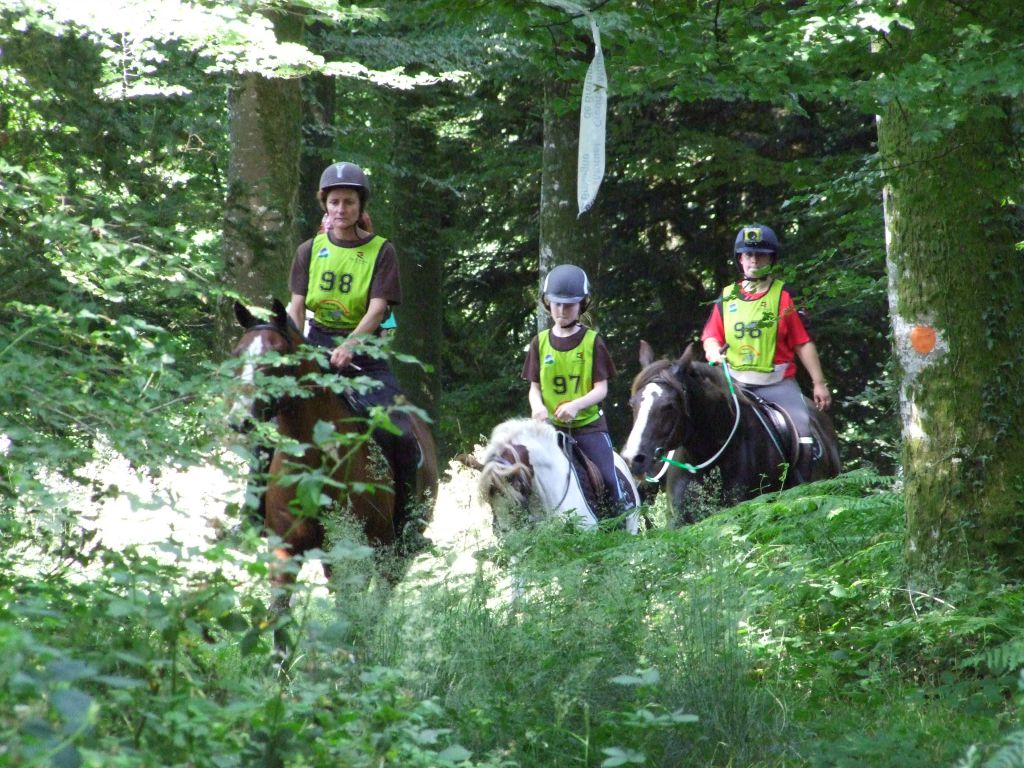 c est vrai que les 3 premiers kilomètres environ se passèrent tranquillement mais ces fameux gués nous ont bien retardés en sachant que ç est Prune et moi qui furent les plus hésitantes... Enfin surtout Prune au 1er qui ne cessait de reculer... Obliger de descendre comme les enfants ...