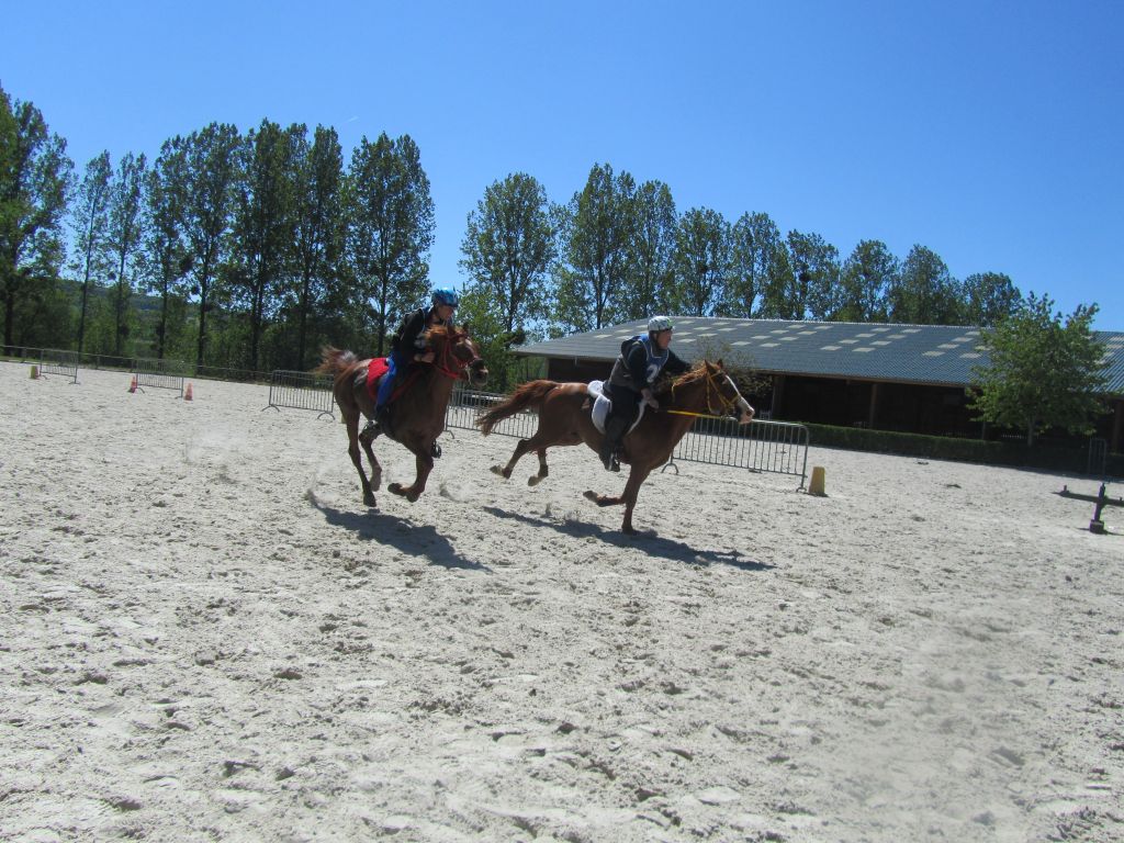 Toujours à la recherche de nouveautés et prêts à s'essayer à une nouvelle discipline, nous nous sommes lancés dans les courses d'endurance. C'est donc sous un beau dimanche ensoleillé que s'est déroulé la première participation du club à une compétition d'endurance où ambiance amicale et bonne humeur étaient au rendez-vous. La course d'endurance est une course de fond chronométrée et ponctuée par des contrôles vétérinaires assurant le bien-être et la bonne santé du cheval. Pour les épreuves auxquelles nous participions, le but était d'arriver dans un intervalle de temps donné avec un cheval en bonne condition à la fin de l'épreuve, le classement se fait ensuite en fonction du temps d'arrivée et du rythme cardiaque du cheval: mieux il récupère, mieux c'est ! Des stages avaient été organisé durant l'année, pour découvrir la discipline, ses règles, son fonctionnement, entrainer chevaux et cavaliers aux longues chevauchées à un rythme soutenu et s'exercer à présenter son cheval pour les contrôles vétérinaires.