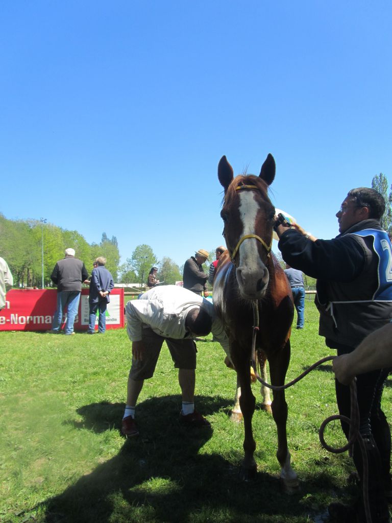 Après une demi-heure de récupération avec marche, douche et broutage à volonté, les chevaux ont tous passé le contrôle véto sans problème, seule Opaline s'est montrée un peu agitée.