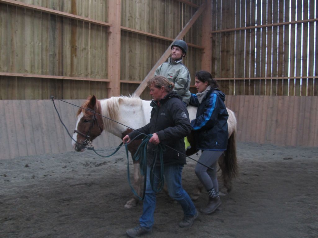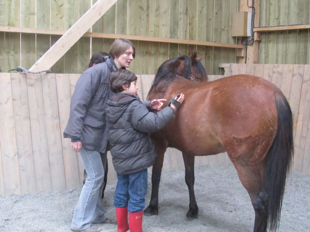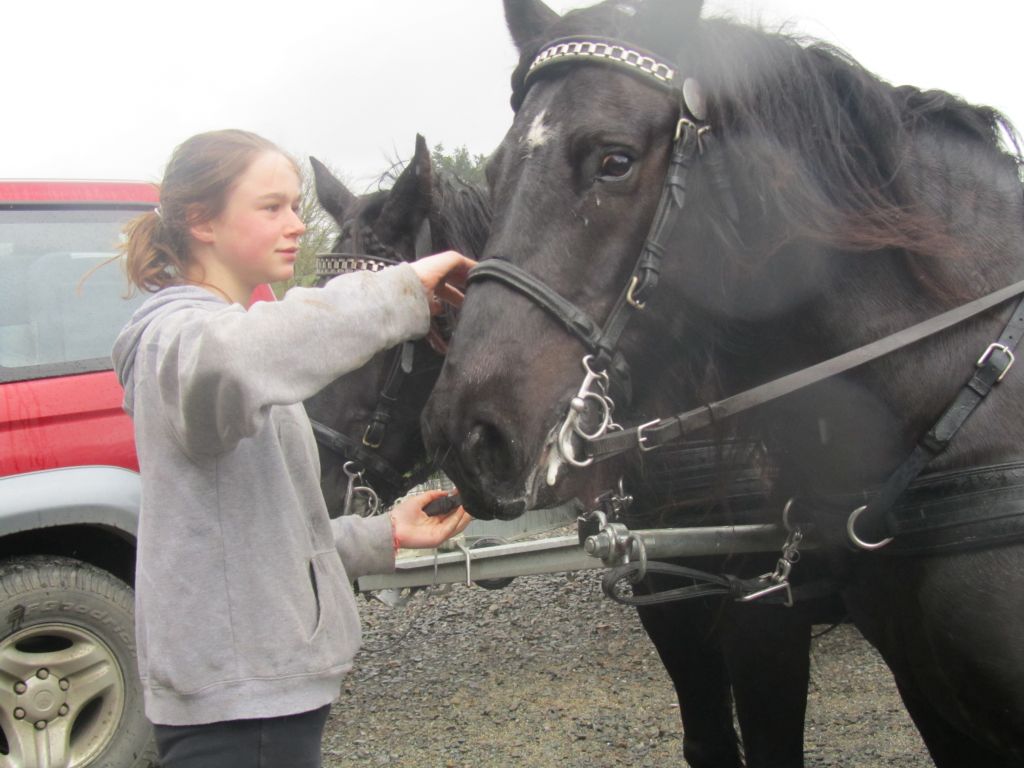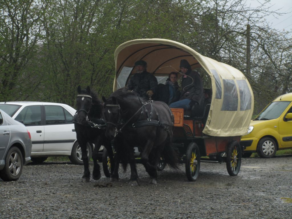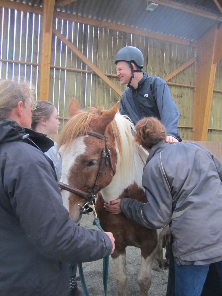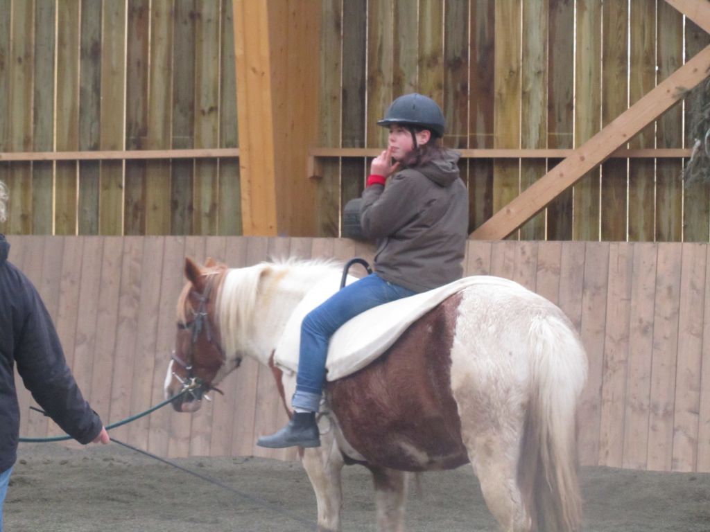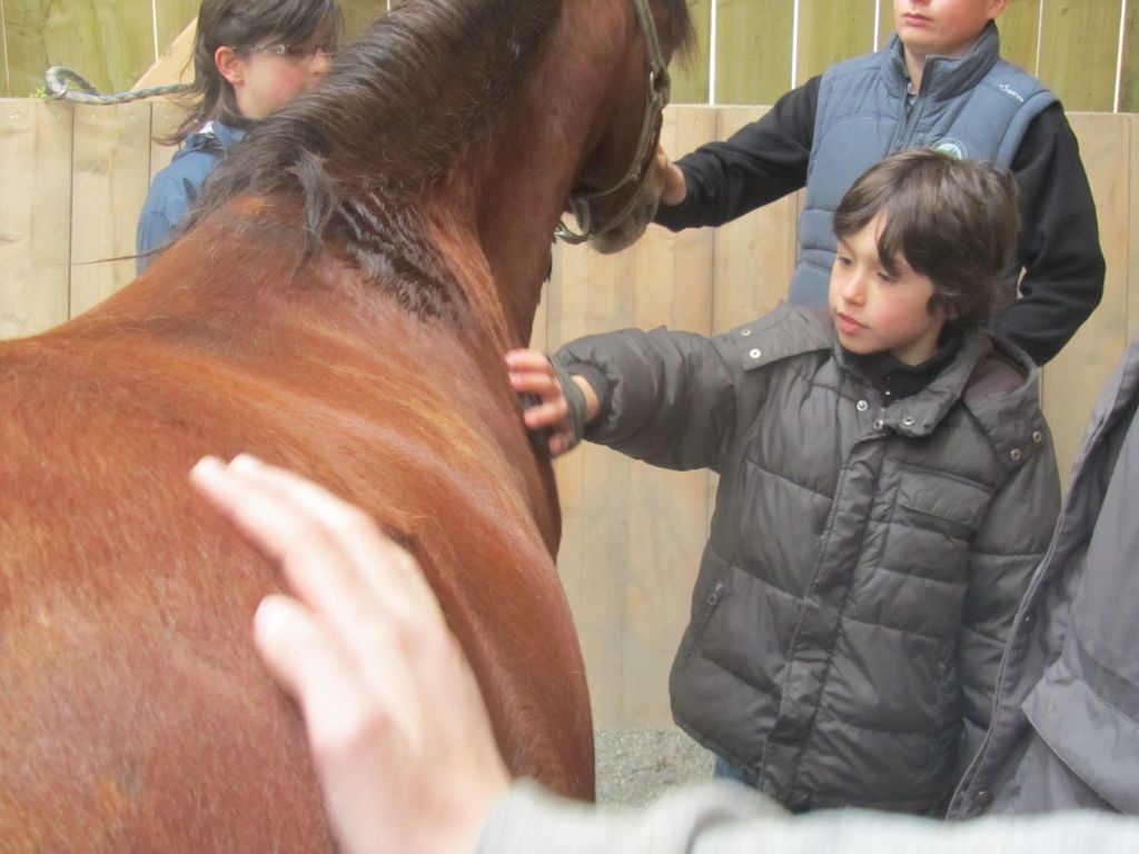 Décidément, le temps n'était pas encore de la partie, notre manège au moins a eu son utilité. L'association Equidicap m'avait sollicité en milieu d'année pour organiser une après-midi famille autour de plusieurs ateliers à cheval (parcours à poney, attelage, voltige et brossage). C'était une grande première pour nous et c'était l'occasion de mettre en valeur tout ce qui peut être proposé à poney auprès des personnes handicapées. Durant tout l'après-midi, environ 25 cavaliers ont pu naviguer autour des différentes activités avec un immense plaisir. J'étais chargée de proposer un poney en voltige; Madame étant en arrêt de travail, je me suis dit que Jet pouvait faire l'affaire mais à ma grand surprise, Jet n'était pas du tout coopératif, deux immenses mérens attachés à l'entrée du manège lui avaient fait perdre la tête. Madame a donc repris prématurément du service que Gwénola a admirablement bien gérée. Je la remercie vivement en passant ! Irène et Valérie ont pris en charge le parcours de maniabilité, du coup je me suis retrouvée pendant quelques temps spectatrice, ce qui est tellement rare... Dans une ambiance chaleureuse, les cavaliers ont pu découvrir plusieurs exercices à cheval sollicitant l'équilibre, la souplesse et l'adresse. L'attelage malheureusement s'est déroulé sous une pluie tenace. Je tiens à remercier vivement les familles ayant fait l'effort de se déplacer malgré le temps, l'association Equidicap pour sa parfaite organisation, et plus particulièrement Valérie, Irène, Nolwenn et Gwénola, ainsi que tous les jeunes de mon club venus me donner un coup de main: Flo, Nono, Violette et Océane ...