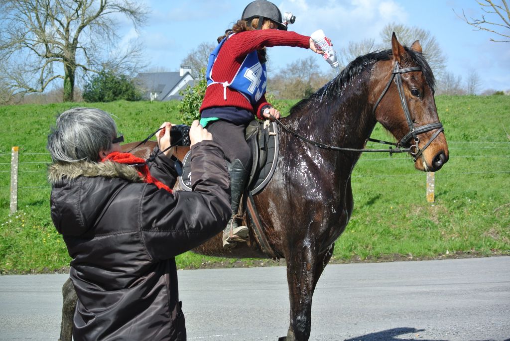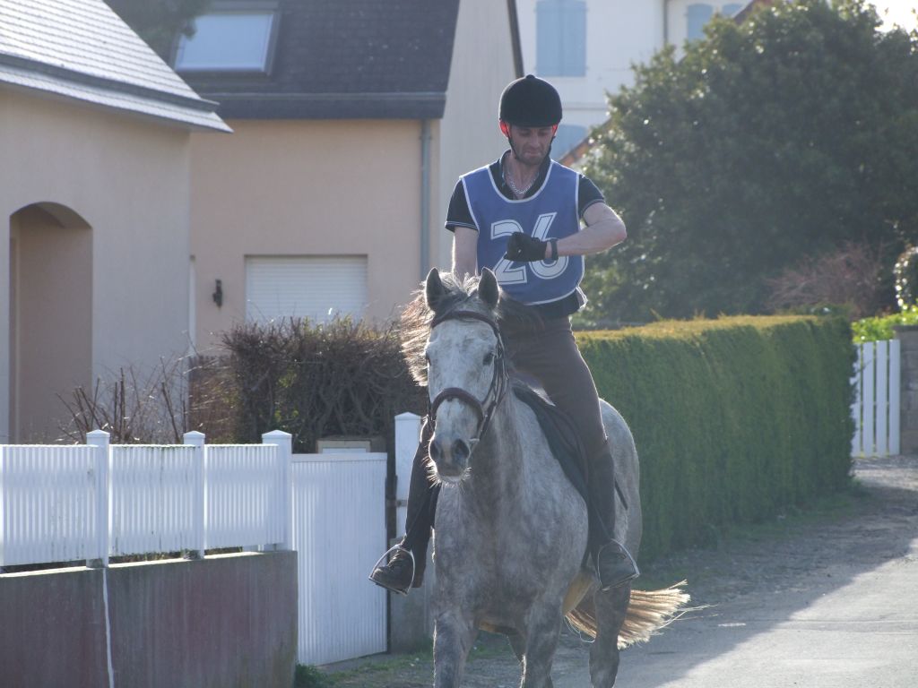 Arrivée tranquille sur Kairon à 11h20, le temps de retirer les dossards et puis de manger plusieurs parts de gâteaux ( bravo les cuisinières ), nous voilà partis au contrôle véto de la 20 et à 13h10 départ. Organisation très serrée en raison des marées, pas de départ possible le matin donc un enchaînement rapide entre la 20 et la 10. Le temps nous a rendu la course vraiment agréable même si le parcours avait encore des séquelles de ce maudit hiver : Trous dans les chemins, passages encore inondés. Heureusement, la plage s'offrait à nous avec 4 kms de galopade en légèreté et là, tout le monde s'est régalé, personne pour nous doubler et énerver Thaïs, que du bonheur. Arrivée à 15h03 à une vitesse de 11,61kms/h.