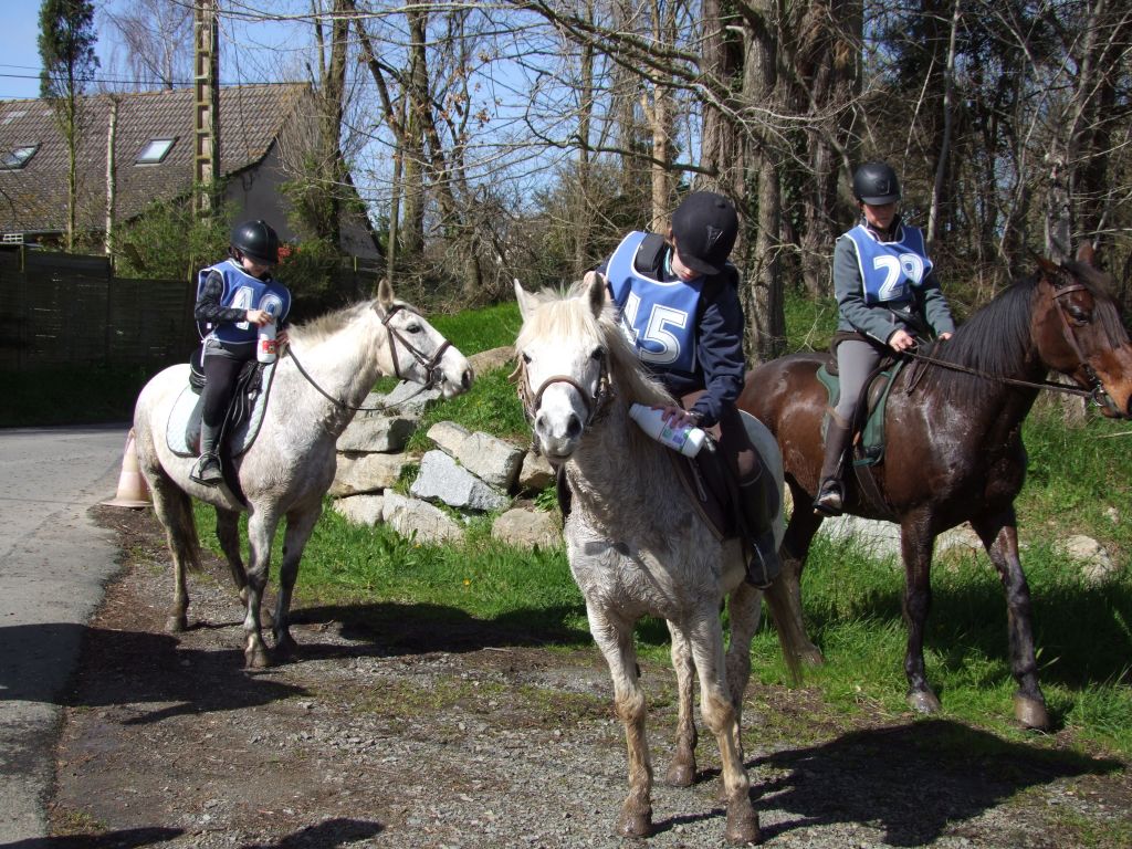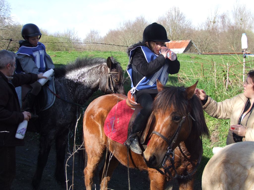 Monitrice devancée par les commentaires de ses élèves bravo ! 3 superbes courses avec des cavaliers au taquet, des chevaux et poneys avec des cardiaques records, et plein de gâteaux ... Cette fois, 3 courses en parallèle, une bonne petite organisation : Stéphane et Hélo se lançaient dans la 40 avec Boboun et Quick, 3 cavaliers dans la 20 : Violette et Opaline, Maël et Prune, Mélanie et Ptit Léo, et moi-même et Thaïs; dans la 10kms, le record des poids plumes : Salomé et Katia, Moranne et Tornado ( toutes les deux ont 7 ans !! ), Andy et Jet, s'ajoutent dans la 10 deux adultes Frédérique et Sissi, et Anne et sa jument : My hopes.