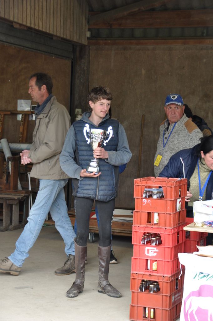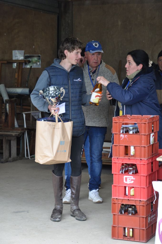Fabien et Oriana terminent 2èmes ( récup à 40 ), Erwenn et Juju terminent 6èmes ( récup à 46 ), Christelle et Sissi terminent 8èmes ( récup à 48 ), Lou et Jaya terminent 12èmes ( récup à 52 ). Une très belle course sans souci particulier, un petit gâteau de la part d'Erwenn dans les pommiers ! Un groupe sérieux et des cavaliers bien en selle ! Bravo à Lou pour avoir monté Jaya dans le calme et la confiance ! Bravo à Erwenn pour la gestion de sa jeune jument !