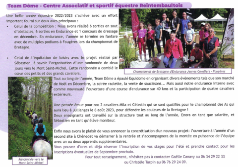 Une pensée émue pour nos 2 cavaliers Mila et Célestin qui se sont qualifiés pour le championnat des As qui aura lieu à Jullianges le 6 aout 2023, pour défendre les couleurs de la Bretagne !
