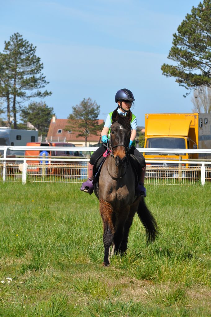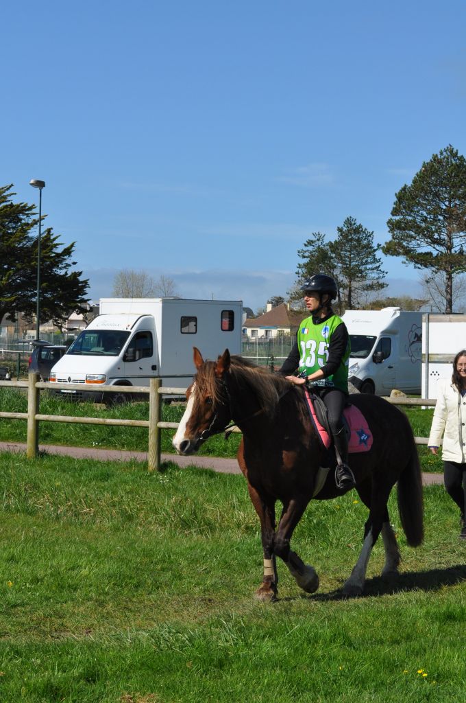 Ce dimanche, nous étions partis sur Agon pour l'endurance de printemps. Plage, dunes, chemins creux... tout un paysage magnifique s'est offert à nos yeux concentrés sur les rythmes de nos chevaux. D'abord légèrement pluvieux, un soleil printanier est venu nous réchauffé la couenne...