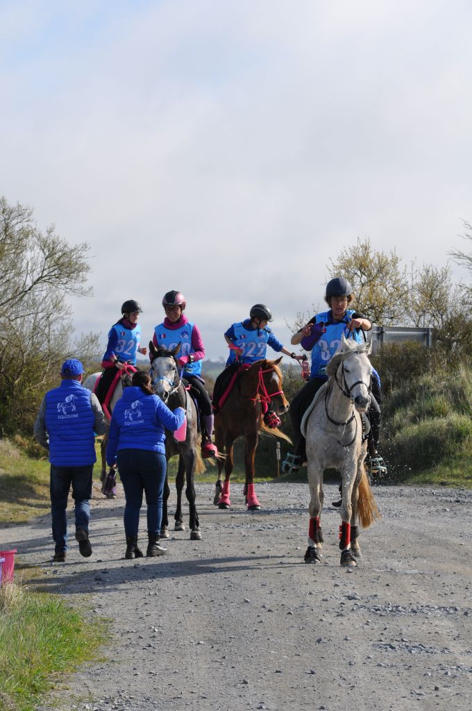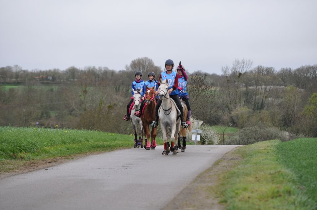 Christèle est partie sur la 60km avec ses jeunes cavalières (woooops...) : deux boucles de 28km, soit 56km réels au compteur. Pendant ce temps, votre serviteur et ses co-cavaliers se sont engagés sur la 20km et la 40km. Nous aurions pu faire un peu mieux sur la 1ère boucle, mais certains passages se sont révélés plus inattendus... comme une file de tracteurs rouillés ondulant vers les champs de moules. bila : 2 minutes de retard. Nonobstant, la seconde boucle a été plus intense, et la petite équipe a regagné ces précieuses secondes : 25 secondes d'avance au final ! Bravo les jeunes !