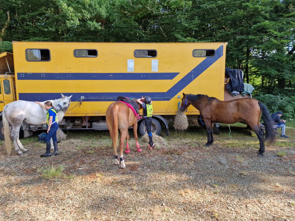 Sur la 40km, les jeunes ont pris tous les podiums pour le championnat jeunes cavaliers : 1er Erwenn/Jushaba, 2nd Cloé/Fifty, 3ème Ella/Jaya. Tous cavaliers confondus, sur 17 en club 1, Erwen reste premier, Cloé troisième, Ella 5ème, et Jojo 11ème. Une belle performance avec une Juju bien chaude au départ ( beau planer d'Erwenn ! ), deux autres petites chutes sur la deuxième boucle et la dernière c'est la chute de mon portable ( Bahia n'a pas du tout apprécié se faire doubler surprise) d'où une vitesse pas optimale mais de très bonnes récupérations en revanche qui nous sauvent ( Juju 42, Fifty 44, Jaya 44, Favori 48 ) Hélium malheureusement éliminé pour boiterie mais une bonne récup à 46. Bravo Christine pour cette progression au contrôle véto ! Félicitations à mes très jeunes cavaliers mais aussi Christine pour avoir gardé un très bon mental !