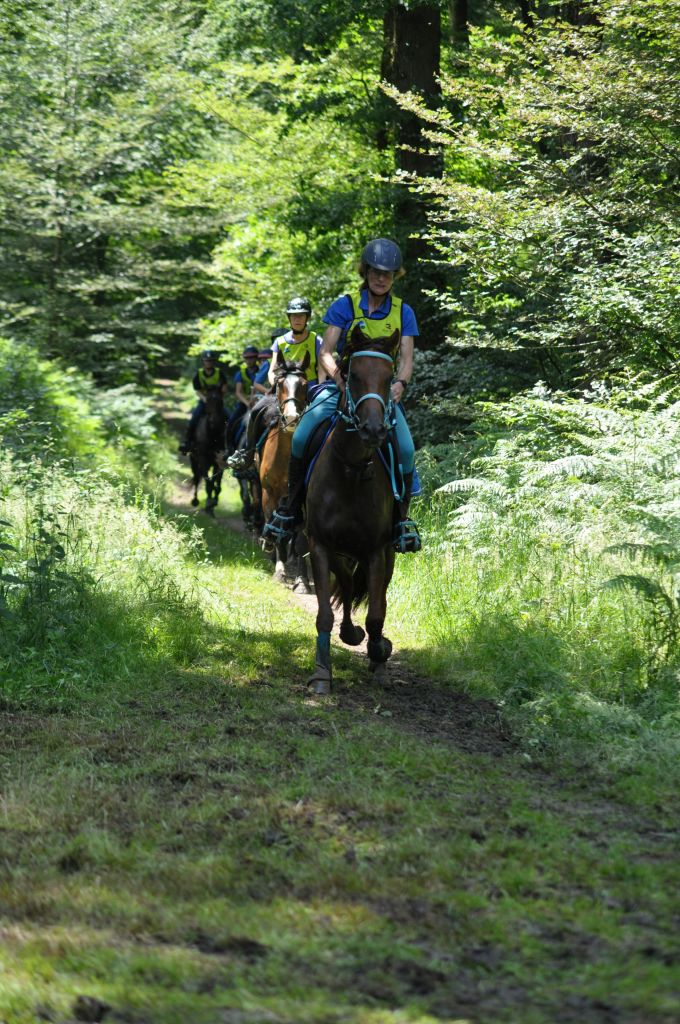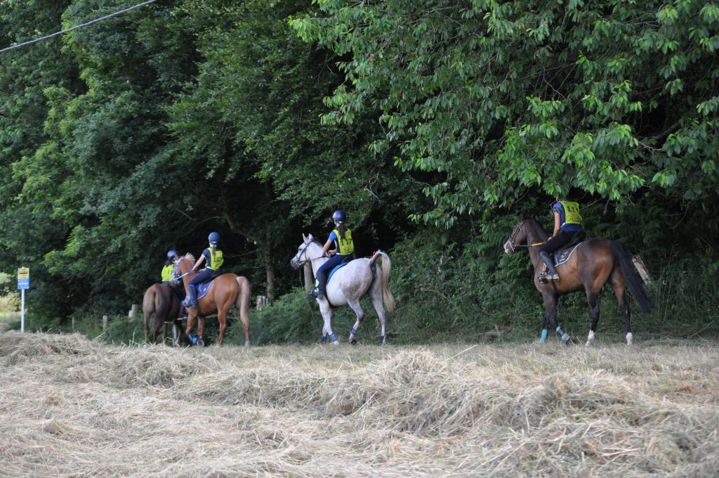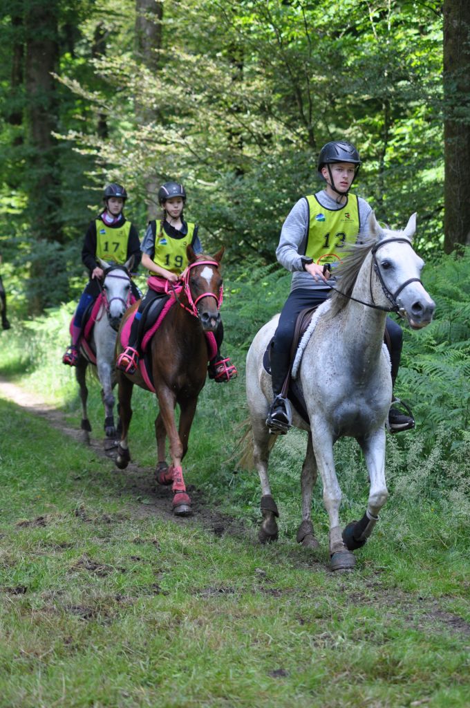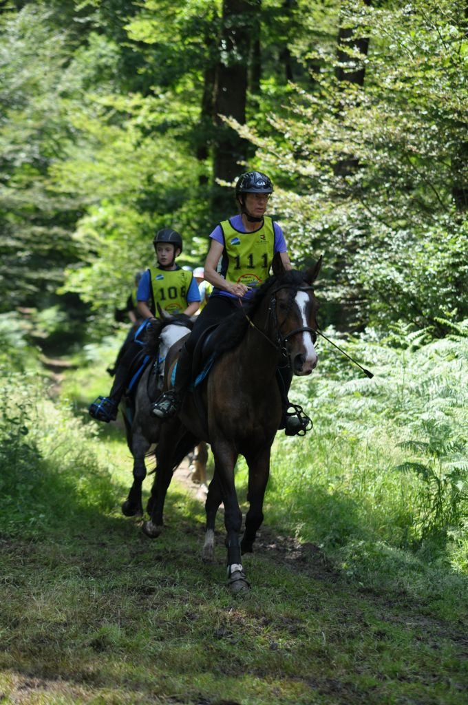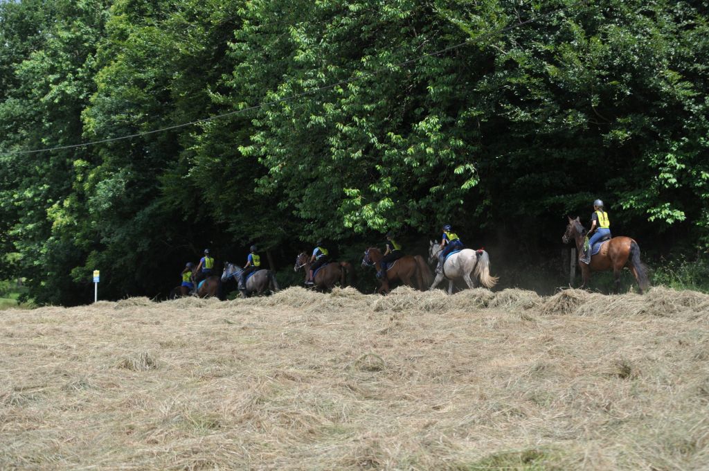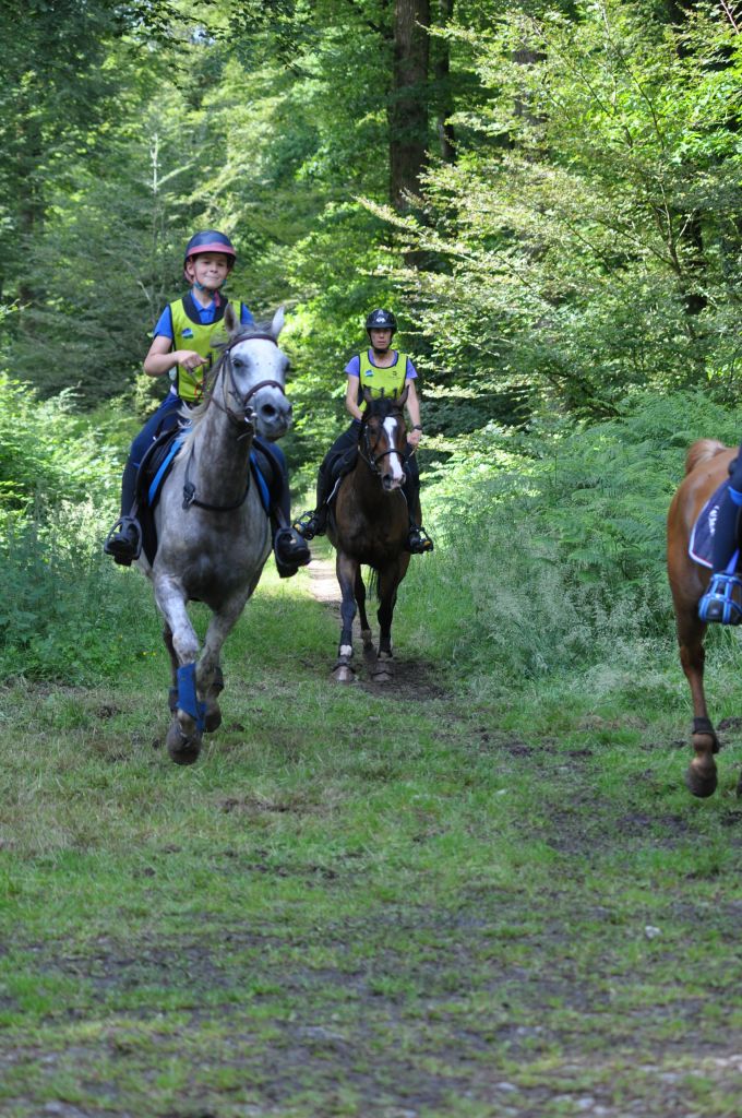 Des terrains pas forcément faciles : les pistes forestières de Fougères sont souvent bosselées et les retenues d'eau des orages de vendredi dernier ont provoqué des trous et des glissades qu'il convient d'éviter... Pas facile, quand l'équipage cavalier/cheval galope à 25km/h...