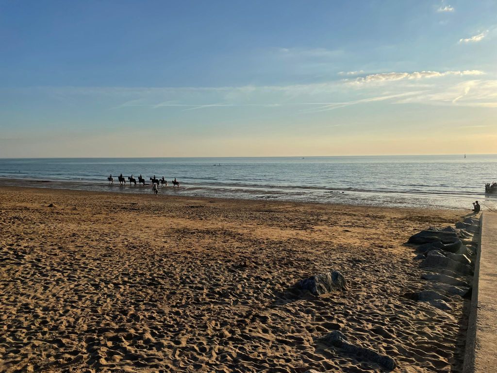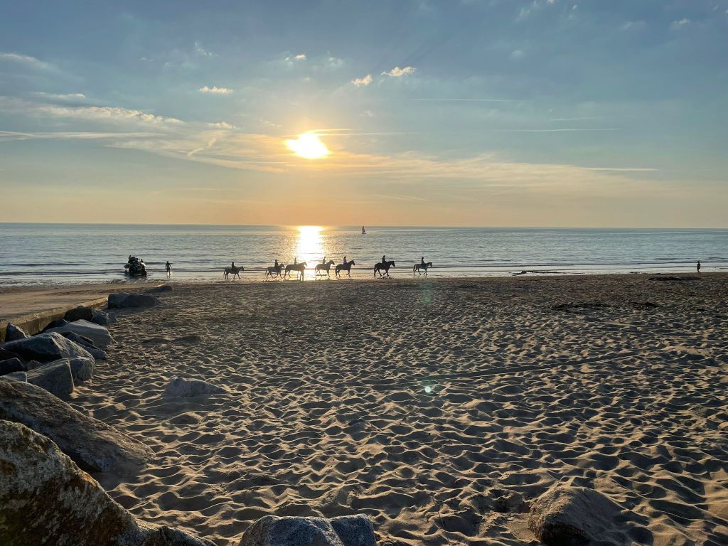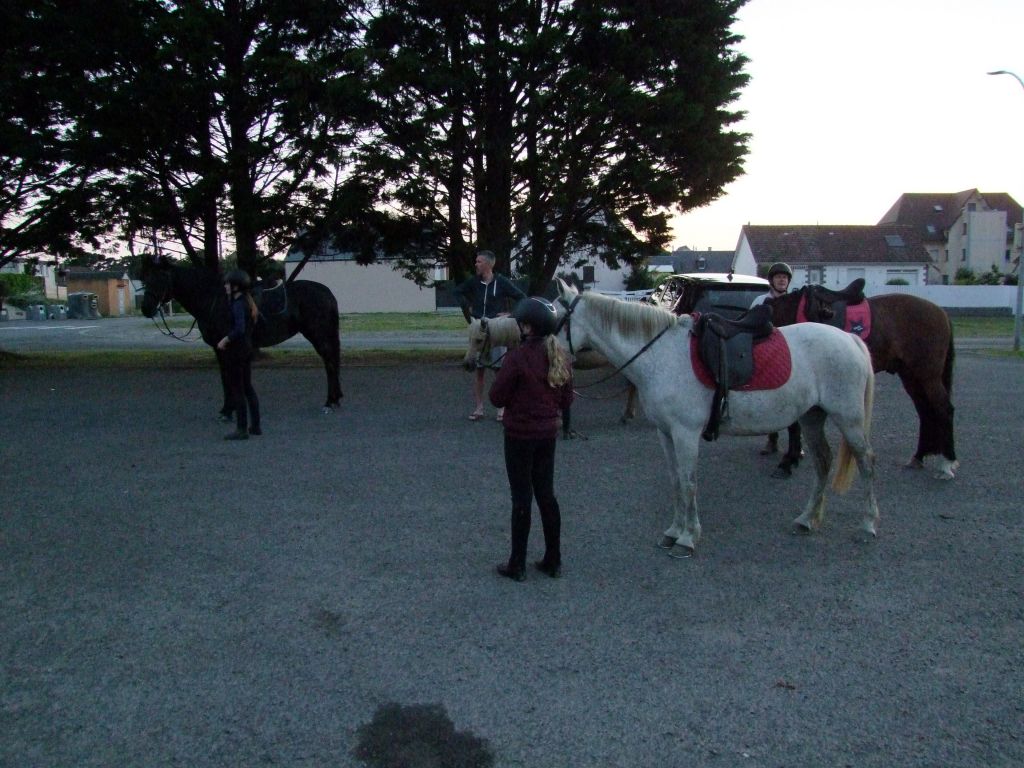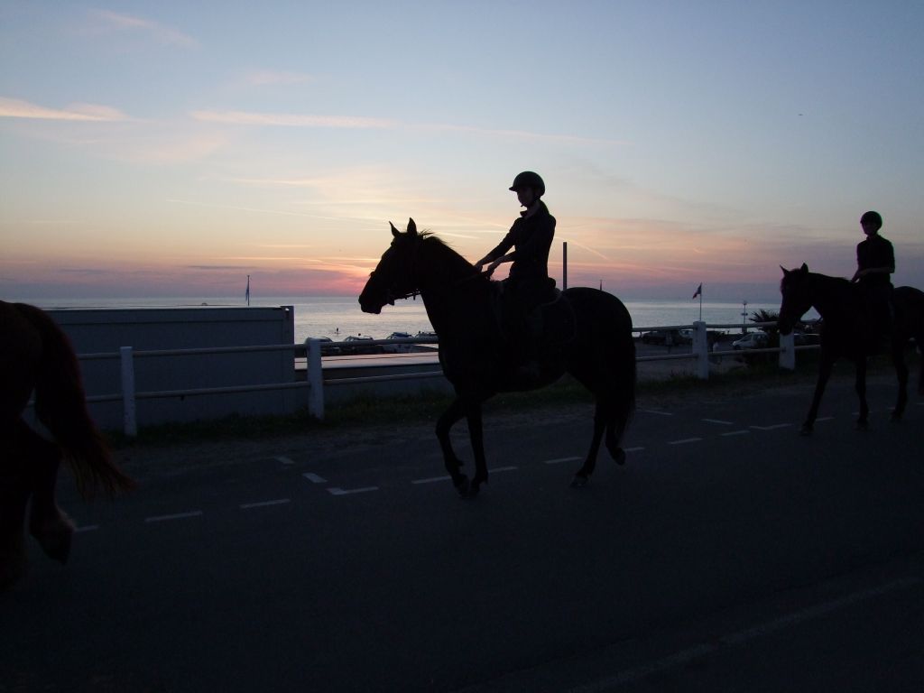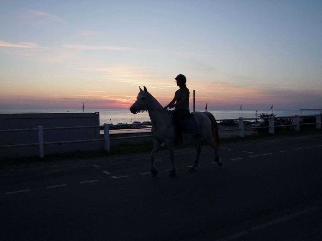C'est avec une journée d'avance que nous sommes allés à Jullouville pour vivre un coucher de soleil à cheval sur la plage. Ce samedi 11 mai, pleine mer à 22h20... pour un départ d'Equidome à 18h30... Un peu serré, mais tout à fait jouable d'autant que le coefficient de marée n'était pas trop élevé. Les projections allaient bon train sur l'heure du posé de sabot sur le sable fin ... 20h00 ? 20h15 ? finalement ce fut 20h30.